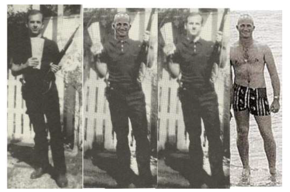 We have already analyzed the backyard photos in a previous post. CE133C was found among Roscoe White’s possessions in 1976, at which time it was turned over to the HSCA by the White family. It was later returned to the White family. The fact that CE133C was found among the possessions of Roscoe White raises all kinds of questions about his possible involvement in the production of these composites. The very first observation happens to be that both “Roscoe at the beach” and “backyard man” are standing with their weight on the right hip.